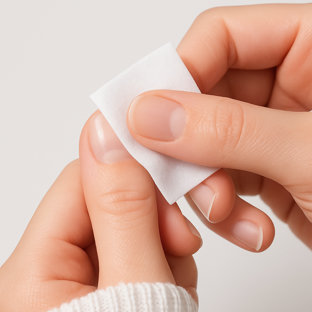 Give your nails a clean slate. Use the prep pad to sweep away any oil, dirt, or moisture so the strips can cling smoothly.