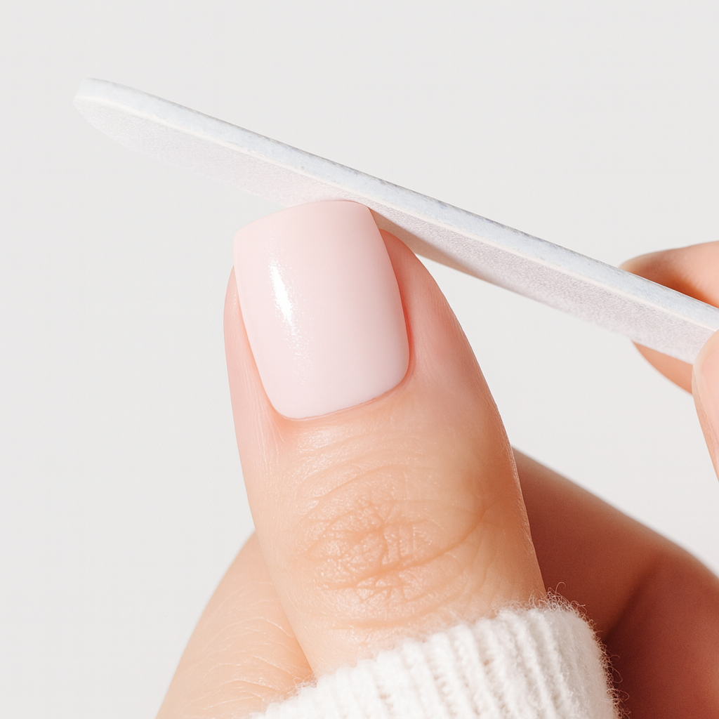 Gently file in one direction to refine the shape and seal the edge. You’re left with a smooth, salon-soft finish.